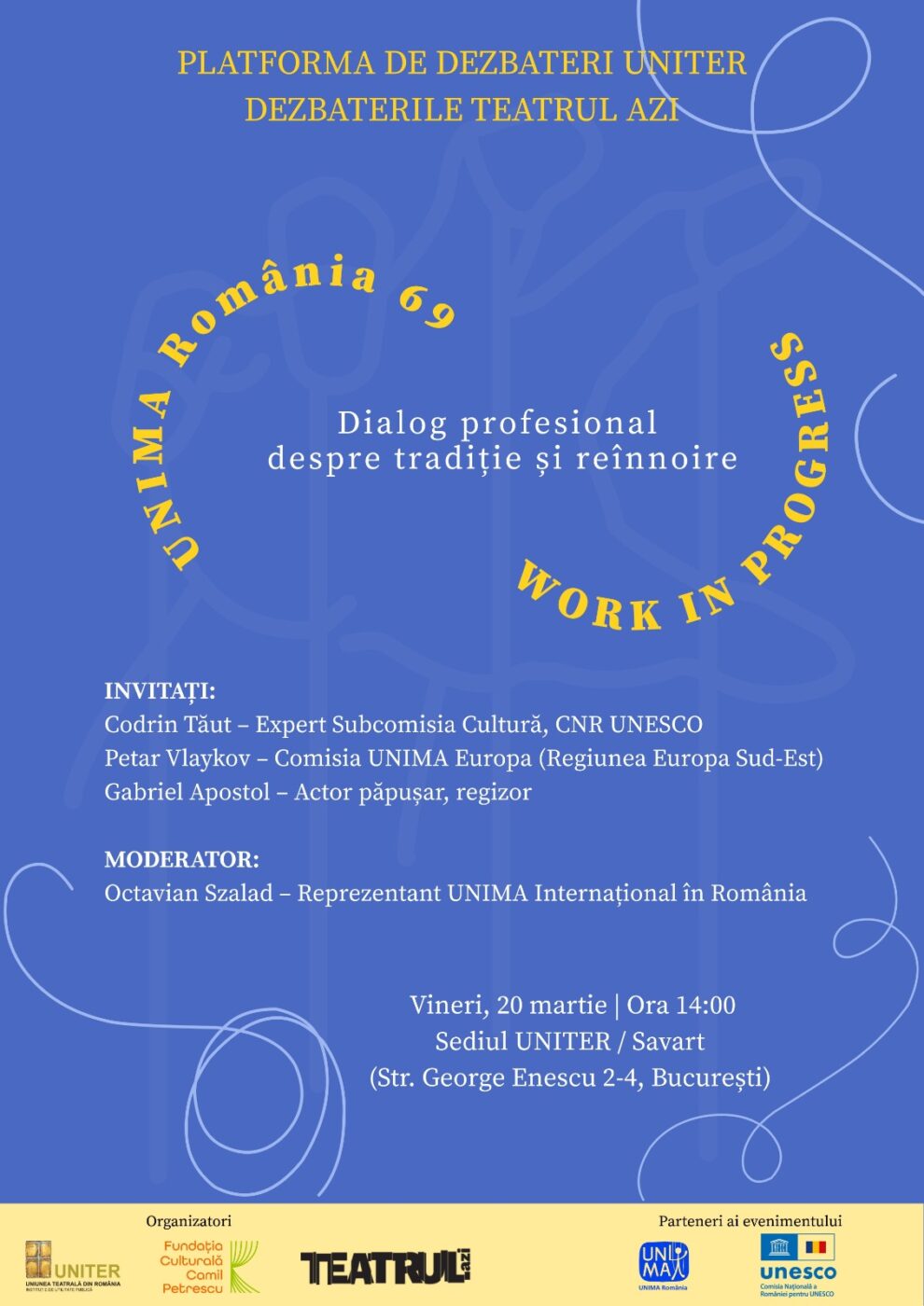 PLATFORMA DE DEZBATERI UNITER – DEZBATERILE TEATRUL AZI Dialog profesional despre tradiție și reînnoire UNIMA România 69 – WORK IN PROGRESS